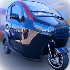 Madat A03 – Elektrischer Dreirad-Kabinenroller in Schwarz Rot, 45 km/h (optional 25 km/h), mit Lithium-Eisenphosphat-Akku (LiFePO₄)