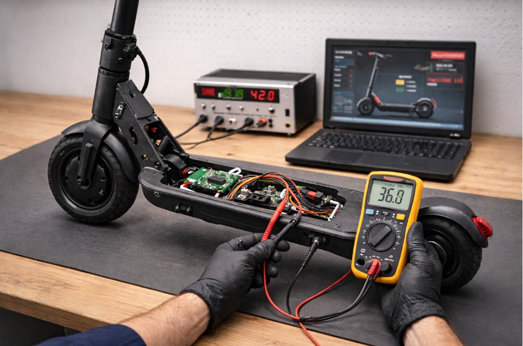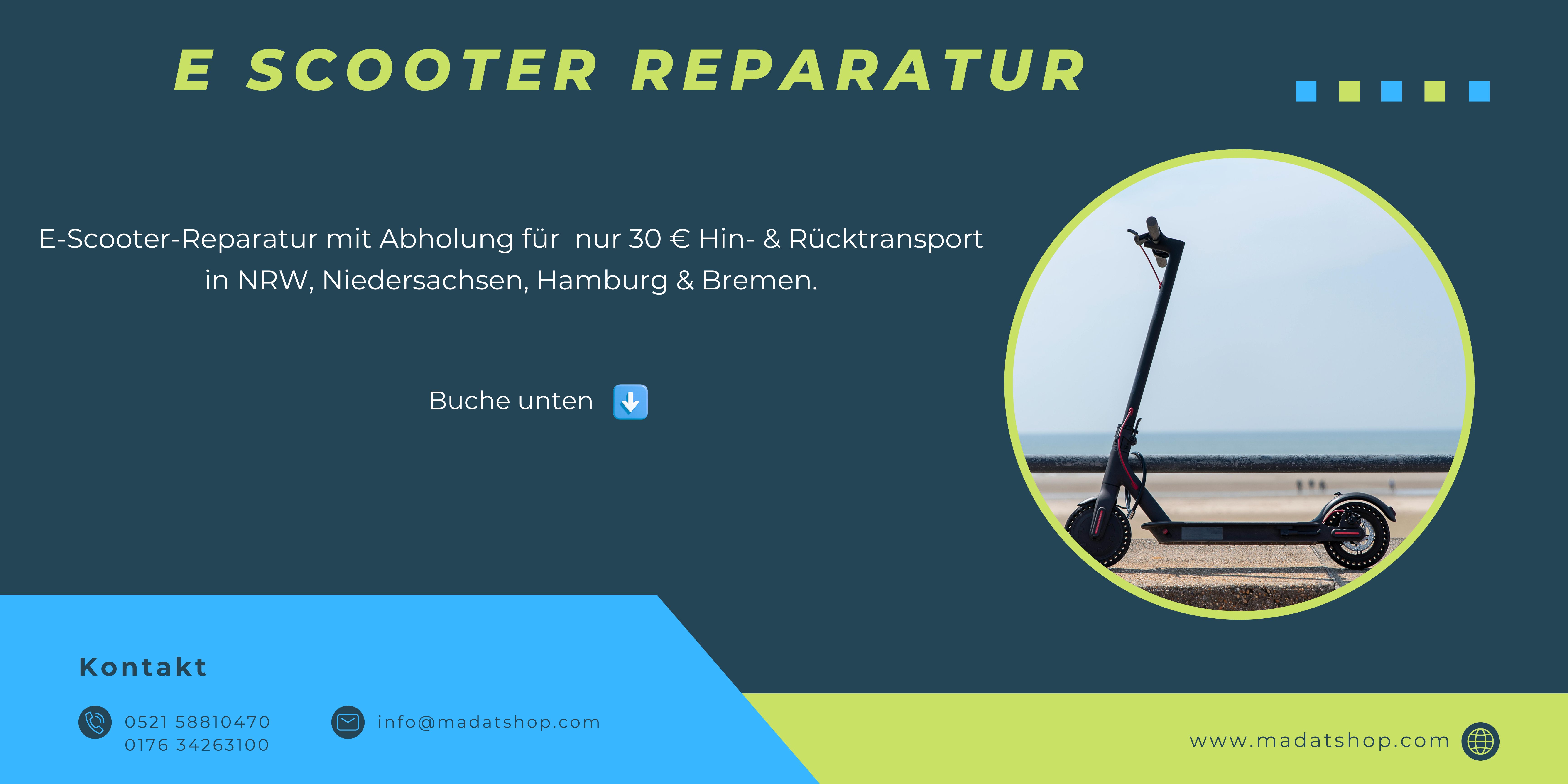 Wir führen die Diagnose und Reparatur von E-Scootern durch. Die Diagnosepauschale beträgt 60 €. Bei einer Reparatur werden die Diagnosekosten vollständig mit dem Reparaturpreis verrechnet .