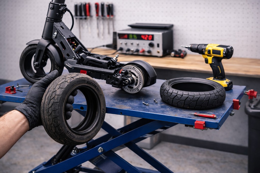 Wir wechseln die Reifen aller E-Scooter-Modelle